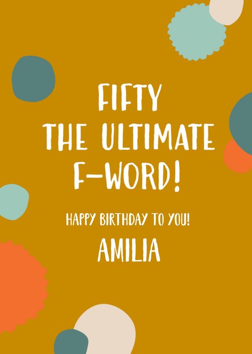 Op deze verjaardagskaart staat: Fifty the ultimate f-word! Happy birthday to you! Je kunt een naam toevoegen.