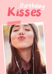 Vrolijke verjaardagskaart met foto en lieve tekst: "Birthday kisses".