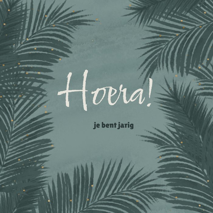 Op deze tropische kaart staat: Hoera Je bent jarig.