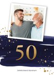 Jeetje, alweer 50 jaar oud. Hoe leuk is het om een leuke Abraham verjaardagskaart te sturen! Op deze kaart kun je een leuke foto toevoegen.