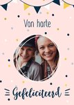 Hiep Hiep Hoera! Jij kent iemand die jarig is. Verras met deze leuke en vrolijke verjaardagskaart. Op de kaart staat: Van harte gefeliciteerd. Je kunt een foto toevoegen.