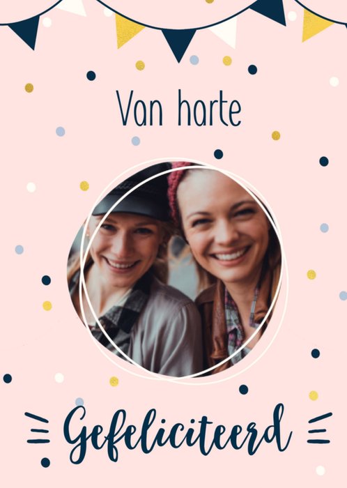 Hiep Hiep Hoera! Jij kent iemand die jarig is. Verras met deze leuke en vrolijke verjaardagskaart. Op de kaart staat: Van harte gefeliciteerd. Je kunt een foto toevoegen.