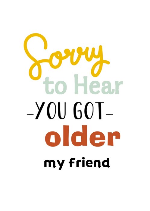 Op deze verjaardagskaart voor je vriend staat: Sorry to hear you got older my friend.