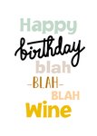 Vrolijke verjaardagskaart met grappige tekst: "Happy birthday blah blah blah wine".