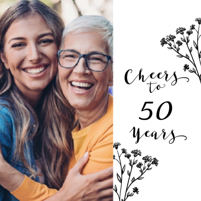 Op deze leuke verjaardagskaart staat: Cheers to 50 years.