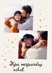 Wie verras jij met deze schattige verjaardagskaart? Op de kaart kun je twee foto's toevoegen. Ook zie je de tekst: Fijne verjaardag schat.