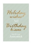 Stuur deze kaart naar je vriendin die op Kerst jarig is. Op de kaart staat: Holiday wishes and birthday kisses. Just for you. Ook kun je een naam toevoegen.