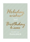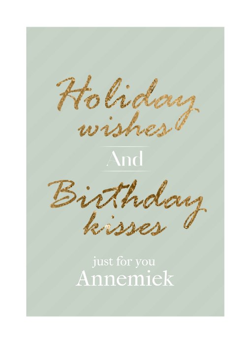 Stuur deze kaart naar je vriendin die op Kerst jarig is. Op de kaart staat: Holiday wishes and birthday kisses. Just for you. Ook kun je een naam toevoegen.