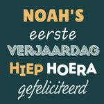 Op deze leuke verjaardagskaart staat: Noah's eerste verjaardag hiep hoera gefeliciteerd.