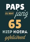 Op deze stoere verjaardagskaart voor je vader staat: Paps jij bent jarig [leeftijd] hiep hoera gefeliciteerd.