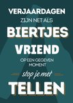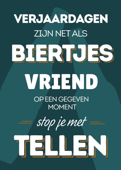 Grappige verjaardagskaart met de tekst: verjaardagen zijn net als biertjes vriend; op een gegeven moment stop je met tellen. En zo is het maar net ;-)