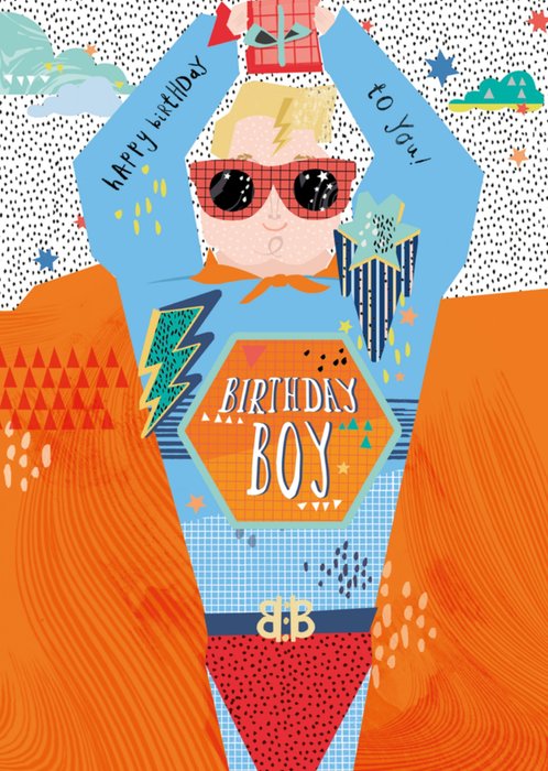 Wie ga jij deze leuke verjaardagskaart van Hotchpotch sturen? Deze stoere superhelden kaart heeft zijn eigen superheld. Op de kaart staat de volgende tekst: "Happy birthday to you! Birthday boy."