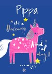 Wie ga jij deze leuke verjaardagskaart van Hotchpotch sturen? Op de kaart staat een roze eenhoorn met versiersels eromheen. Je kunt de naam personaliseren. De volgende tekst staat op de kaart: "It's a unicorn kind of day!."