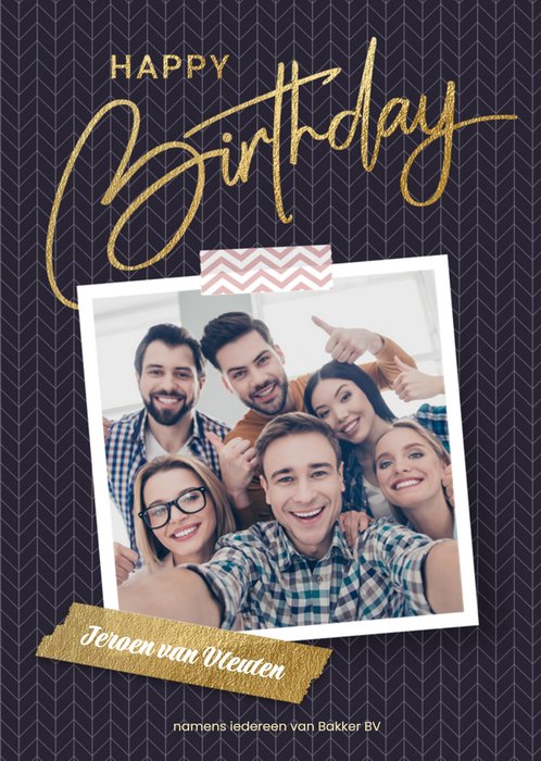 Hiep Hiep Hoera! Er is iemand jarig! Stuur om te verrassen deze leuke vrolijke kaart van Luckz! Op de kaart staat: Happy birthday. Je kunt een naam en foto toevoegen.