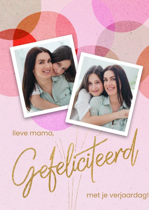 Hiep Hiep Hoera! Er is iemand jarig! Stuur om te verrassen deze leuke vrolijke kaart van Luckz! Op de kaart staat: Lieve mama gefeliciteerd met je verjaardag. Je kunt twee foto's toevoegen.