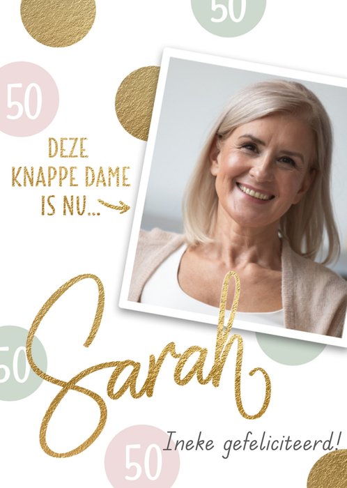 Hiep Hiep Hoera! Er is iemand jarig! Stuur om te verrassen deze leuke vrolijke kaart van Luckz! Op de kaart staat: Deze knappe dame is nu Sarah. Je kunt een naam en foto toevoegen.