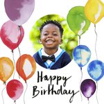 Wens iemand een fijne verjaardag met deze leuke kaart met ballonnen van Marie Bodie. Op de kaart staat: Happy Birthday. Ook kun je een foto toevoegen.