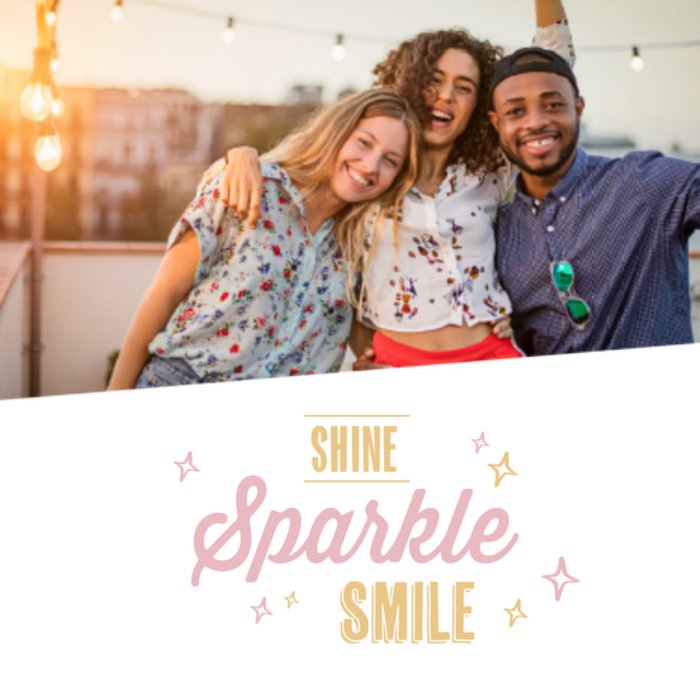 Super leuke verjaardagskaart met aanpasbare foto: shine, sparkle, smile.