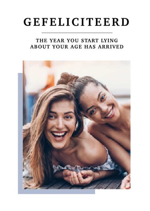 Stuur deze leuke verjaardagskaart naar iemand om te verrassen. Je kunt een leuke foto toevoegen. Ook staat er de tekst: Gefeliciteerd. This year you start living about your age has arrived.