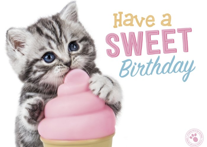 Wat een lieve kaart van Studio Pets! Op deze kaart staat een kitten en de tekst: Have a sweet birthday.