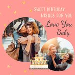 Wie verras jij met deze schattige verjaardagskaart? Op de kaart kun je twee foto's toevoegen. Ook zie je een prachtige taart en de tekst: Sweet birthday wishes for you. Love you baby.
