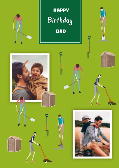 Een verjaardag is altijd leuk! Stuur daarom een leuke verjaardagskaart voor de echte tuinierder van TMS. Op deze kaart staat: Happy birthday dad. Ook kun je twee foto's toevoegen.