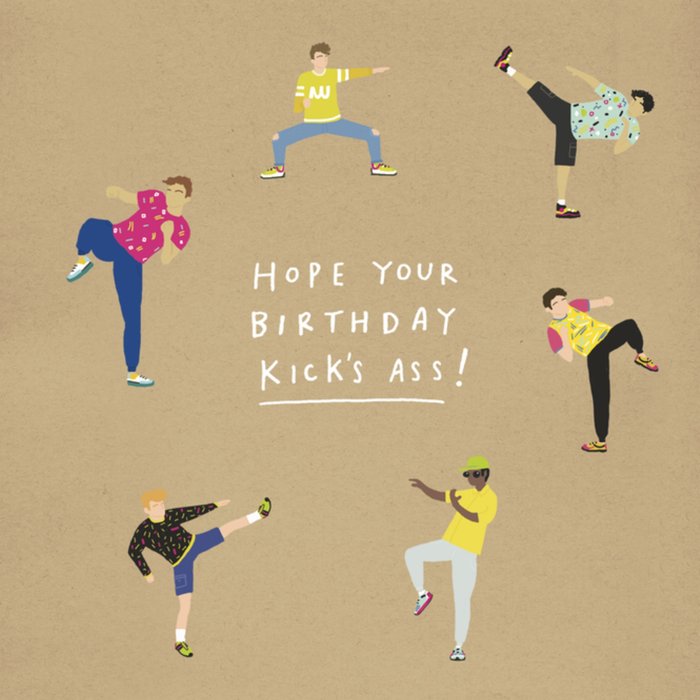 Wens iemand een fijne verjaardag met deze leuke kaart van UK Greetings. Op de kaart staat: Hope your birthday kick's ass!