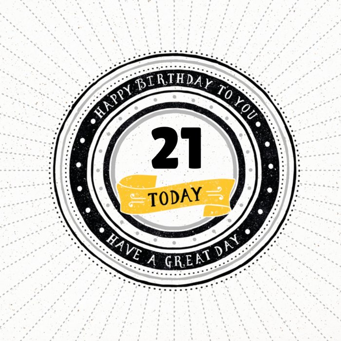 Op deze leuke mannelijke verjaardagskaart van Hotchpotch So Macho zie je een grote circkel met 21 today.