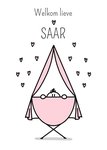 Lieve geboortekaart met illustratie en aanpasbare naam.