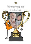 Leuke fotokaart met illustratie van een beker en de tekst: Fijne vaderdag opa, jij bent de beste