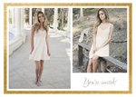 Op de uitnodiging kan je twee foto's plaatsen. De uitnodiging is voorzien van een goud frame. Tekst op de kaart is 'You're invited!'.