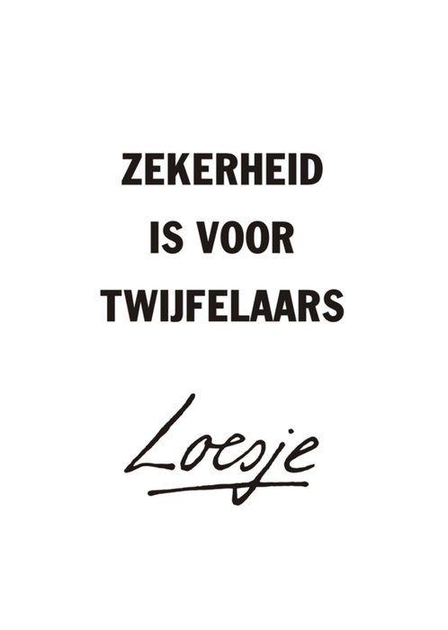 Vrolijke wenskaart van Loesje, met grappige tekst op de voorzijde.