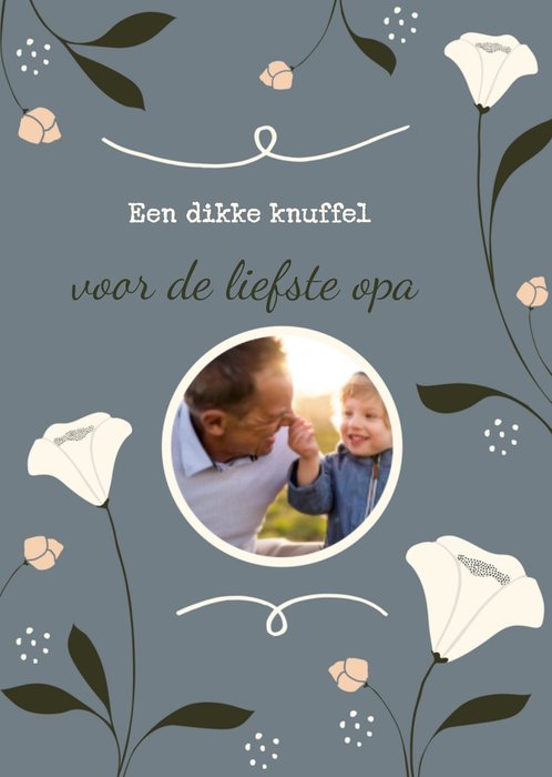 Wil je iemand verrassen met een fleurige kaart van TMS? Op deze kaart staat: Een dikke knuffel voor de liefste oma. Ook kun je een foto toevoegen.