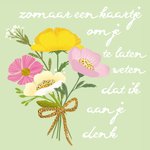 Iemand verrassen met een kaartje? Op deze kaart van Tsjip staat de tekst: zomaar een kaartje om je te laten weten dat ik aan je denk.