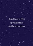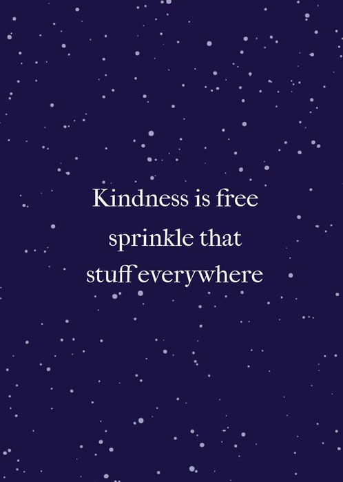Op deze quote kaart van Greetz staat: Kindness is free, sprinkle that stuff everywhere. Op de achtergrond zie je allemaal verfspatten.