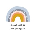 Een lieve zomaar kaart met een getekende regenboog en de tekst: "I can't wait to see you again."