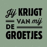 Zeg het met deze vrolijke kaart. Op een ouderwets, groen schoolbord staat 'Jij krijgt van mij de groetjes'