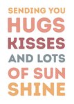 Op deze zomaar kaart staat de tekst: Sending you hugs kisses and lots of sunshine.
