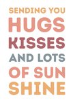 Op deze zomaar kaart staat de tekst: Sending you hugs kisses and lots of sunshine.
