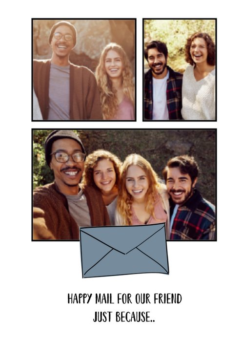 Stuur deze leuke zomaar kaart naar een goede vriend via Greetz! Op de kaart staat: Happy mail for our friend just because. Ook kun je meerdere foto's toevoegen.