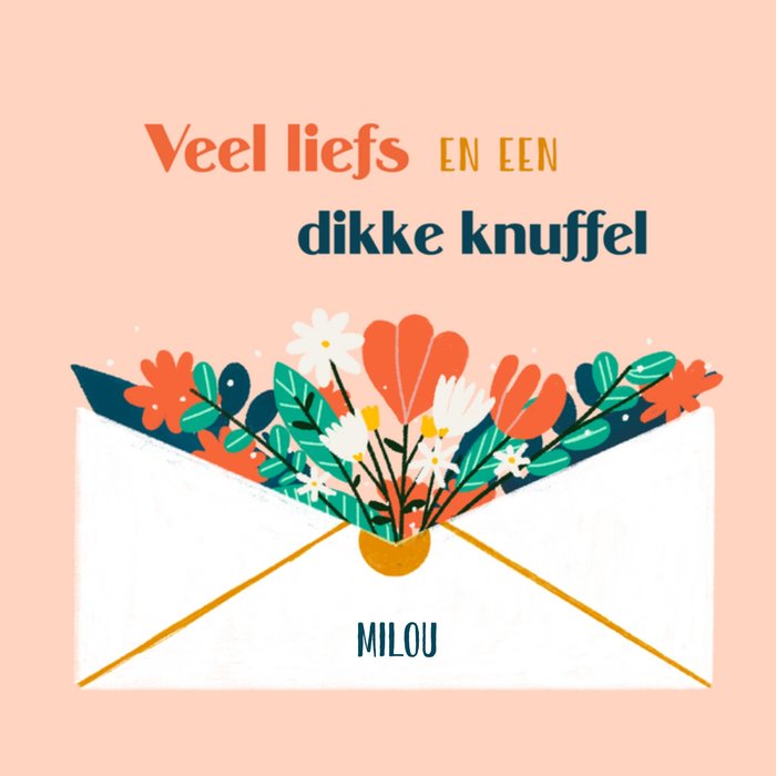 Verras je zus met deze leuke zomaar kaart van Greetz! Op deze kaart staat: Veel liefs en een dikke knuffel. Ook kun je een naam toevoegen.