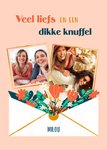 Verras je zus met deze leuke zomaar kaart van Greetz! Op deze kaart staat: Veel liefs en een dikke knuffel. Je kunt een naam en twee foto's toevoegen.