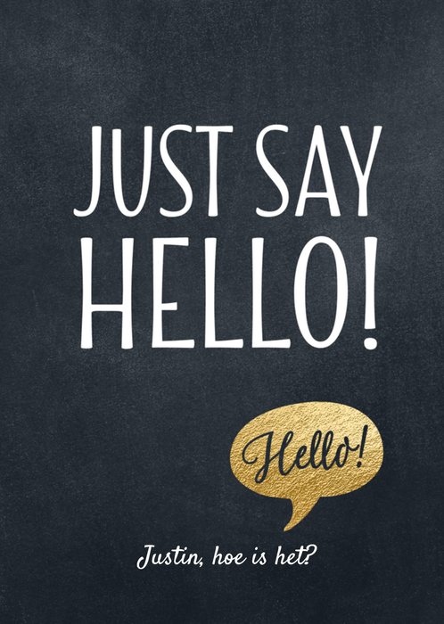 Wil jij iemand verrassen met een leuke kaart? Doe dat dan met een zomaarkaart van Luckz. Op de kaart staat: Just say hello! Hello, [naam] hoe is het?