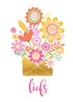 Stuur iemand als verrassing deze leuke en vrolijke kaart gevuld met bloemen van Patricia Maria. Op de kaart staat: Liefs.