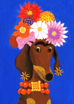 Noëlle Smit | Zomaarkaart | Frida Kahlo teckel
