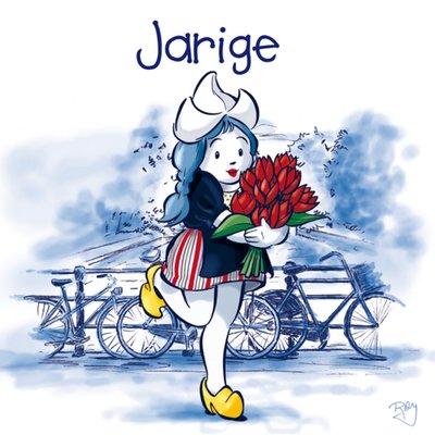 Old Dutch | Verjaardagskaart | boerin | tulpen
