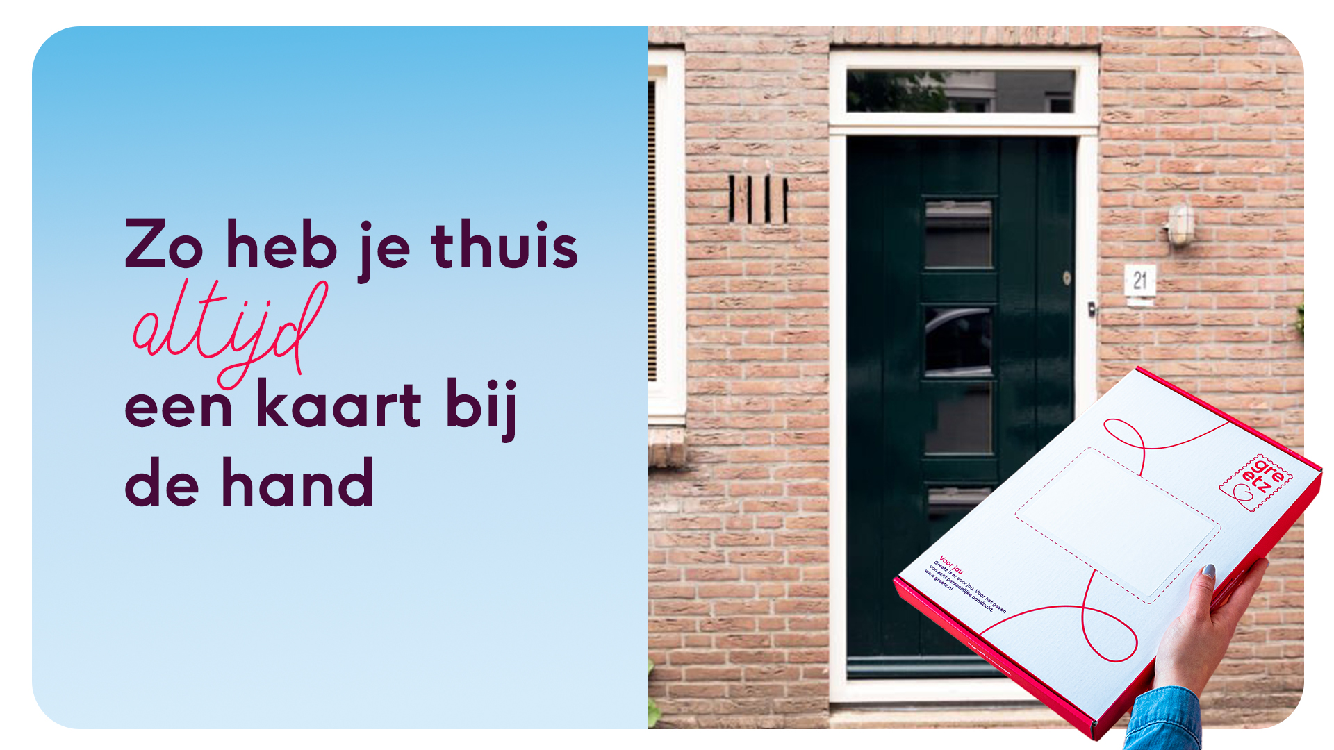 In een tijd waarin persoonlijke aandacht meer waarde heeft dan ooit, biedt Greetz de perfecte oplossing: je kunt een Greetz kaart naar jezelf sturen! Heb je binnenkort een verjaardag, bruiloft of een ander speciaal moment waarbij je jouw kaart graag persoonlijk wilt overhandigen? Kies dan je favoriete kaart, voeg ‘m toe aan je mandje en kies voor bezorging op je eigen adres. Je kunt dit doen met zoveel kaarten als je wilt!
